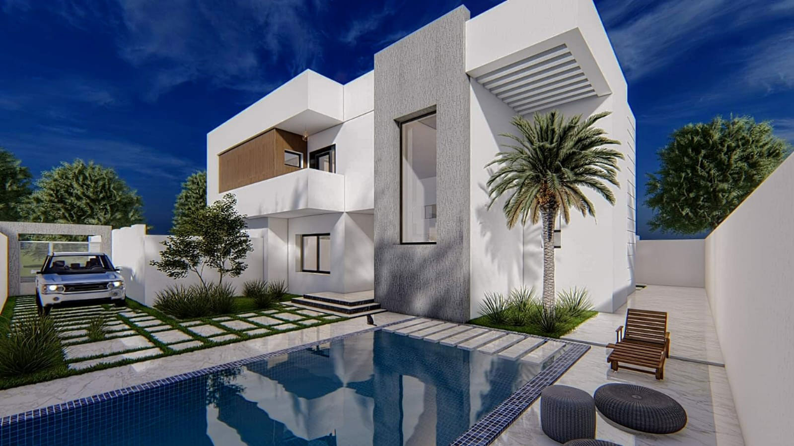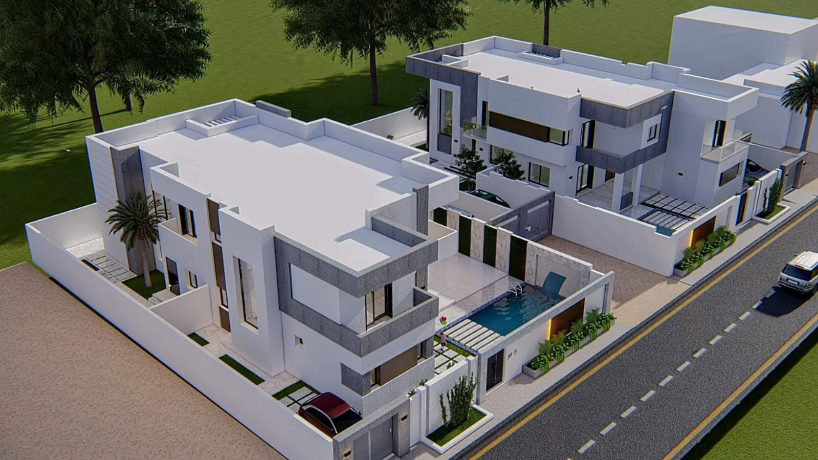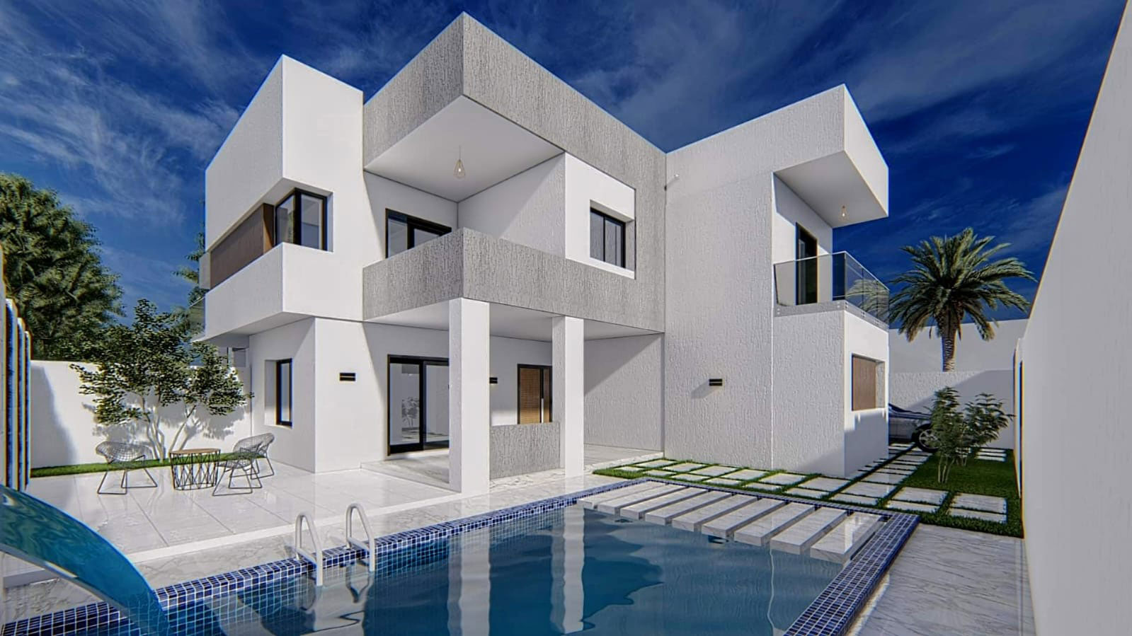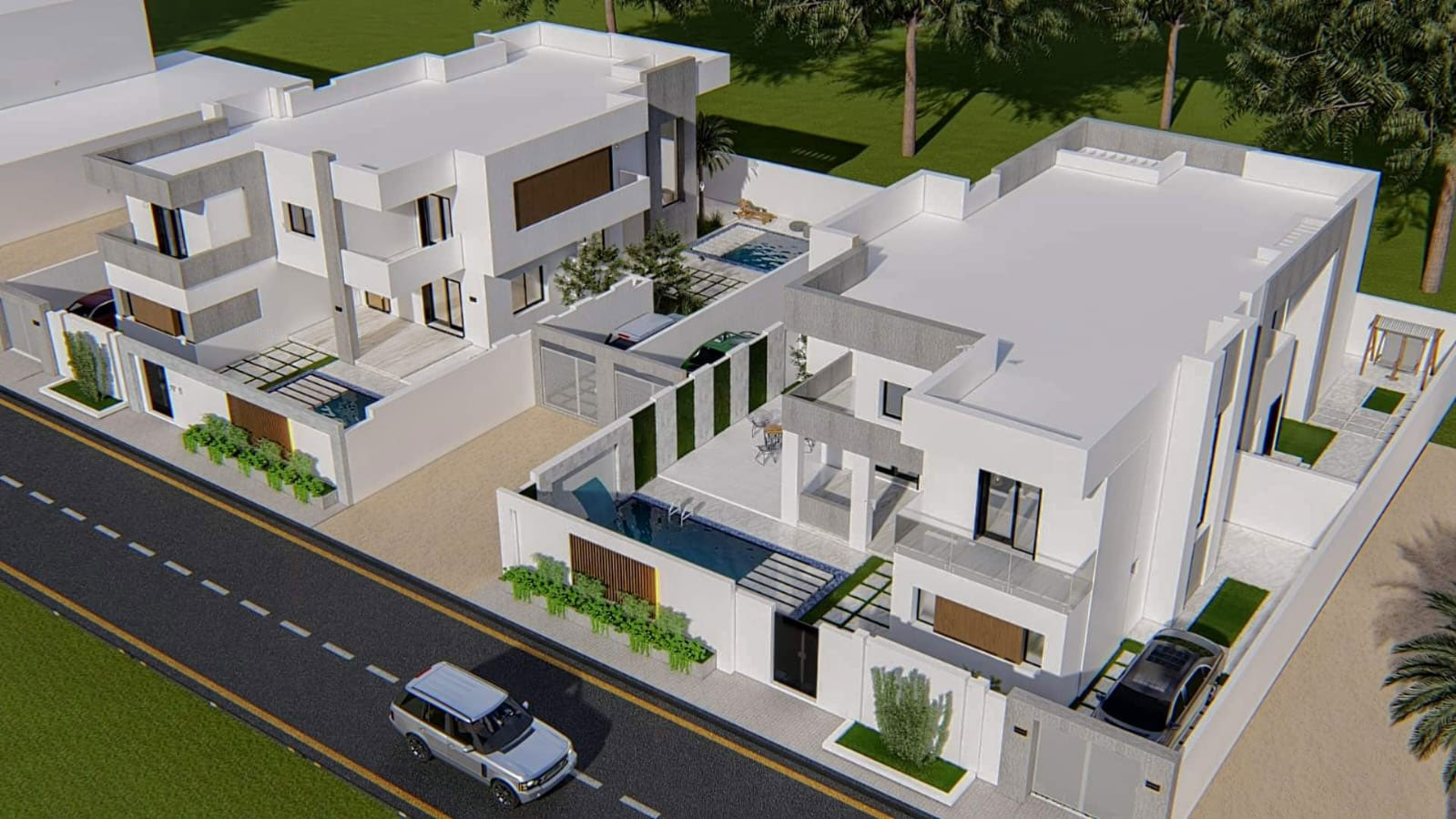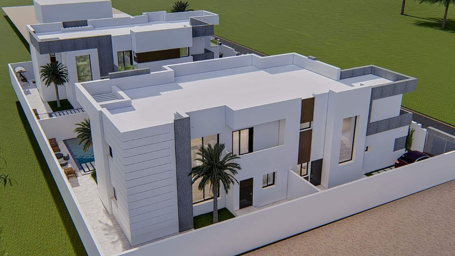 Les Villas Khomsa forment un élégant lotissement de quatre résidences modernes idéalement situé à Hammamet Yasmine, à seulement cinq minutes à pied de la plage. Conçues pour offrir confort, intimité et fonctionnalité, ces villas se distinguent par leur architecture contemporaine et leurs espaces intérieurs bien pensés. Deux d’entre elles disposent de deux suites parentales et de deux chambres supplémentaires, tandis que les deux autres offrent quatre chambres doubles, répondant ainsi à différents besoins, que ce soit pour une famille ou pour un groupe plus important.